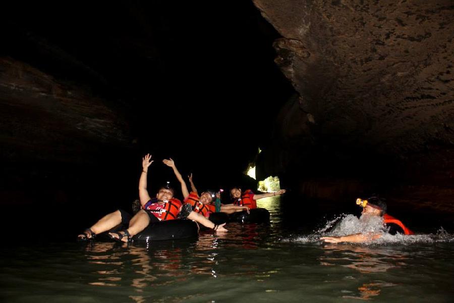Ketika kita masuk ke dalam gua, sepanjang 500 meter kita akan disuguhkan dengan fenomena alam khas gua yaitu stalaktit, dan jika kita beruntung dan mengunjungi gua pada saat cuaca cerah, kita akan melihat cahaya mentari masuk menyelinap diantara celah-celah atap gua, semakin menunjukan warna hijau tosca yang kontras diantara batu-batu kapur gua yang sangatlah indah apalagi ketika kita abadikan dalam jepretan kamera.